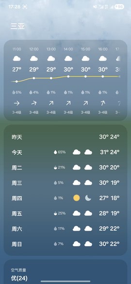 1. 逐小时天气预报:未来24小时的天气变化每小时给你报一遍,就跟游戏里盯着技能冷却一样,早晚温差再大也能提前预判,做好应对。